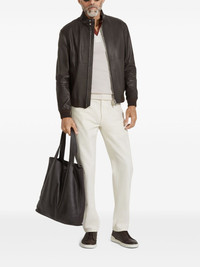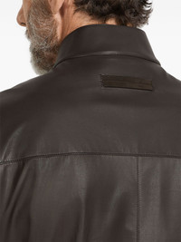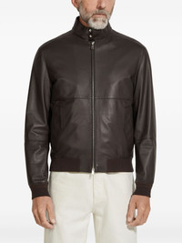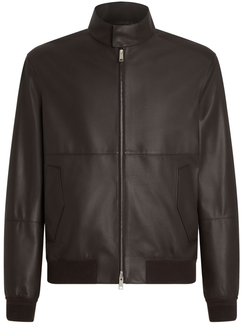 leather bomber jacket Highlights - Coffee brown - Front two-way zip fastening - Ribbed cuffs and hem - Two side flap pockets - Stand-up collar Made in Italy Composition Calf Leather 100% SIZE & FIT Measurement LENGTH 25.19 in(64 cm) FittingInformation Designed for a regular fit, allowing for a comfortably loose fit throughout the body