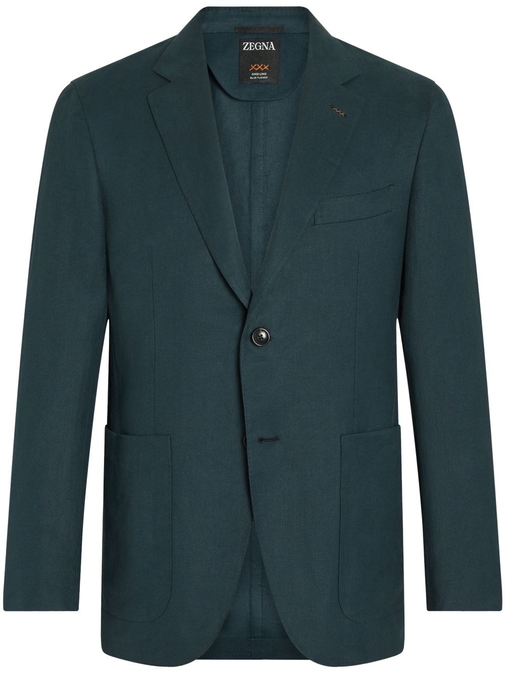 linen blazer Highlights - Teal blue - Front button fastening - Jetted chest pocket - Two front patch pockets - Unlined Made in Italy Composition Linen/Flax 100% SIZE & FIT FittingInformation Designed for a regular fit, allowing for a comfortably loose fit throughout the body Measurement LENGTH 29.13 in(74 cm)