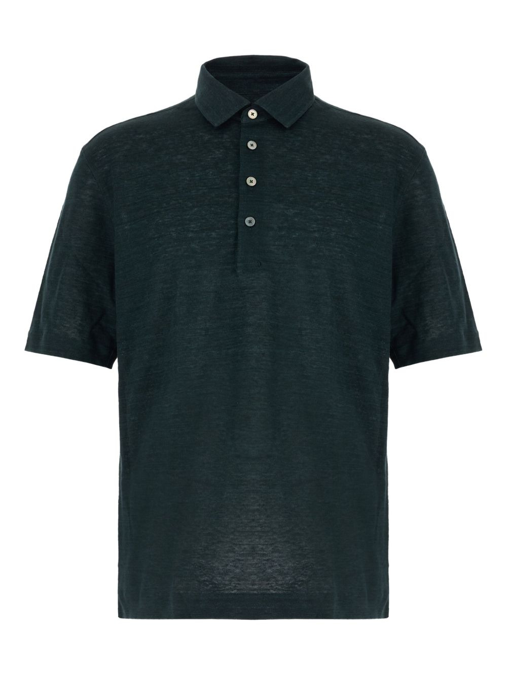 linen buttoned polo shirt Highlights - Dark teal green - Short sleeves - Four-button placket - Linen Imported Composition Linen/Flax 100% Washing instructions Read Manufacturer Guidelines