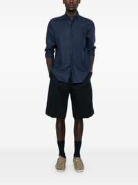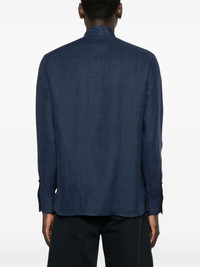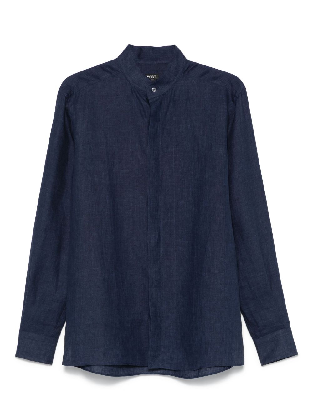 linen shirt Highlights - Navy blue - Front button fastening - Band collar - Long sleeves - Buttoned cuffs Made in Italy Composition Linen/Flax 100% SIZE & FIT Model measurements Height 6 ft 2 in(1.87 m) Bust/Chest 36.41 in(92.5 cm) Hips 37 in(94 cm) Waist 29.52 in(75 cm) FittingInformation Designed for a regular fit, allowing for a comfortably loose fit throughout the body Made from a midweight non-stretch fabric