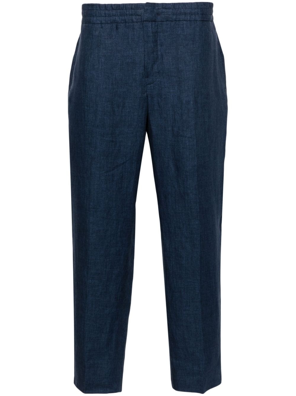 linen straight-leg trousers Highlights - Navy blue - Linen/flax - Tonal stitching - Pressed crease - Two side inset pockets - Two rear button-fastening pockets - Straight leg - Concealed fly and button fastening - Elasticated drawstring waistband Made in Italy Composition Outer: Linen/Flax 100% Lining: Cotton 100% SIZE & FIT Model measurements Height 6 ft 2 in(1.87 m) Bust/Chest 36.41 in(92.5 cm) Hips 35.43 in(90 cm) Waist 29.52 in(75 cm) FittingInformation Designed for a tapered leg, offering a loose unrestricted fit over the leg with a closer fit towards the ankle Adjust this piece’s waistband to your preference using the drawstring Made from a midweight non-stretch fabric This piece fits true to size – take your usual size