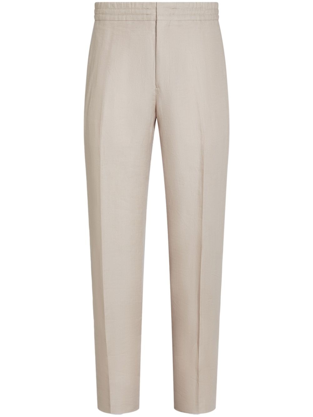 linen straight-leg trousers Highlights - Light beige - Linen/flax - Concealed front zip fastening - Elasticated waistband - Two side slit pockets - Straight leg - Two rear welt pockets Imported Composition Linen/Flax 100%