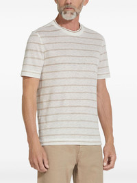 linen T-shirt Highlights - White - Horizontal stripe pattern - Crew neck - Short sleeves - Straight hem Made in Italy Composition Linen/Flax 100% SIZE & FIT FittingInformation Designed for a regular fit allowing for a comfortably loose fit throughout the body