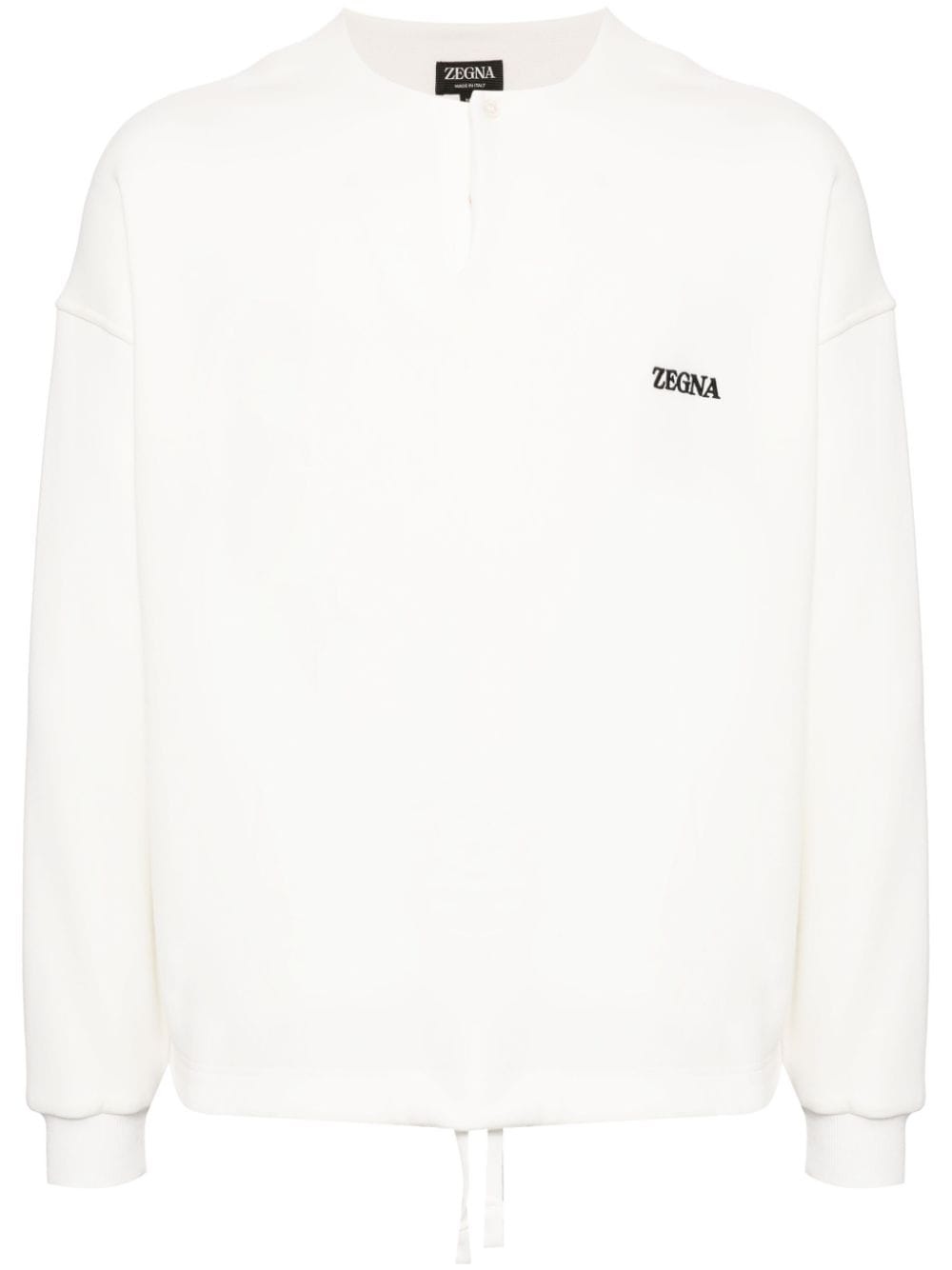 logo-embroidered cotton-blend sweatshirt Highlights - White - Cotton blend - Jersey texture - Embroidered logo at the chest - Crew neck - Short front button fastening - Long sleeves - Ribbed cuffs - Drawstring hem - Straight hem Made in Italy Composition Cotton 93%, Polyamide 7% SIZE & FIT Model measurements Height 6 ft 2 in(1.87 m) Bust/Chest 34.25 in(87 cm) Hips 36.22 in(92 cm) Waist 29.52 in(75 cm) FittingInformation Designed for a relaxed fit, this piece allows for comfort and movement when worn The adjustable drawstring means that you can adjust this piece’s fit to suit your comfort and preference Made from a midweight non-stretch fabric, this piece offers minimal elasticity when worn This piece fits true to size – take your usual size