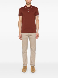 logo-embroidered polo shirt Highlights - Dark red - Short front button fastening - Ribbed cuffs - Short side slits - Stripe trim Imported Composition Cotton 95%, Elastane 5% SIZE & FIT Model measurements Height 6 ft 1 in(1.85 m) Bust/Chest 35.82 in(91 cm) Hips 37.79 in(96 cm) Waist 29.13 in(74 cm) FittingInformation Designed for a slim fit, this polo shirt offers a comfortable fit that sits just away from the body Made from a midweight non-stretch fabric, this piece offers minimal elasticity when worn