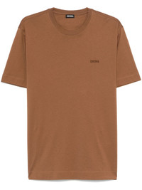 logo-embroidered T-shirt Highlights - Caramel brown - Crew neck - Short sleeves - Straight hem Imported Composition Cotton 100% SIZE & FIT Model measurements Height 6 ft 2 in(1.89 m) Bust/Chest 35.03 in(89 cm) Hips 38.18 in(97 cm) Waist 29.92 in(76 cm) FittingInformation Designed for a regular fit allowing for a comfortably loose fit throughout the body Made from a midweight non-stretch fabric, this piece offers minimal elasticity when worn