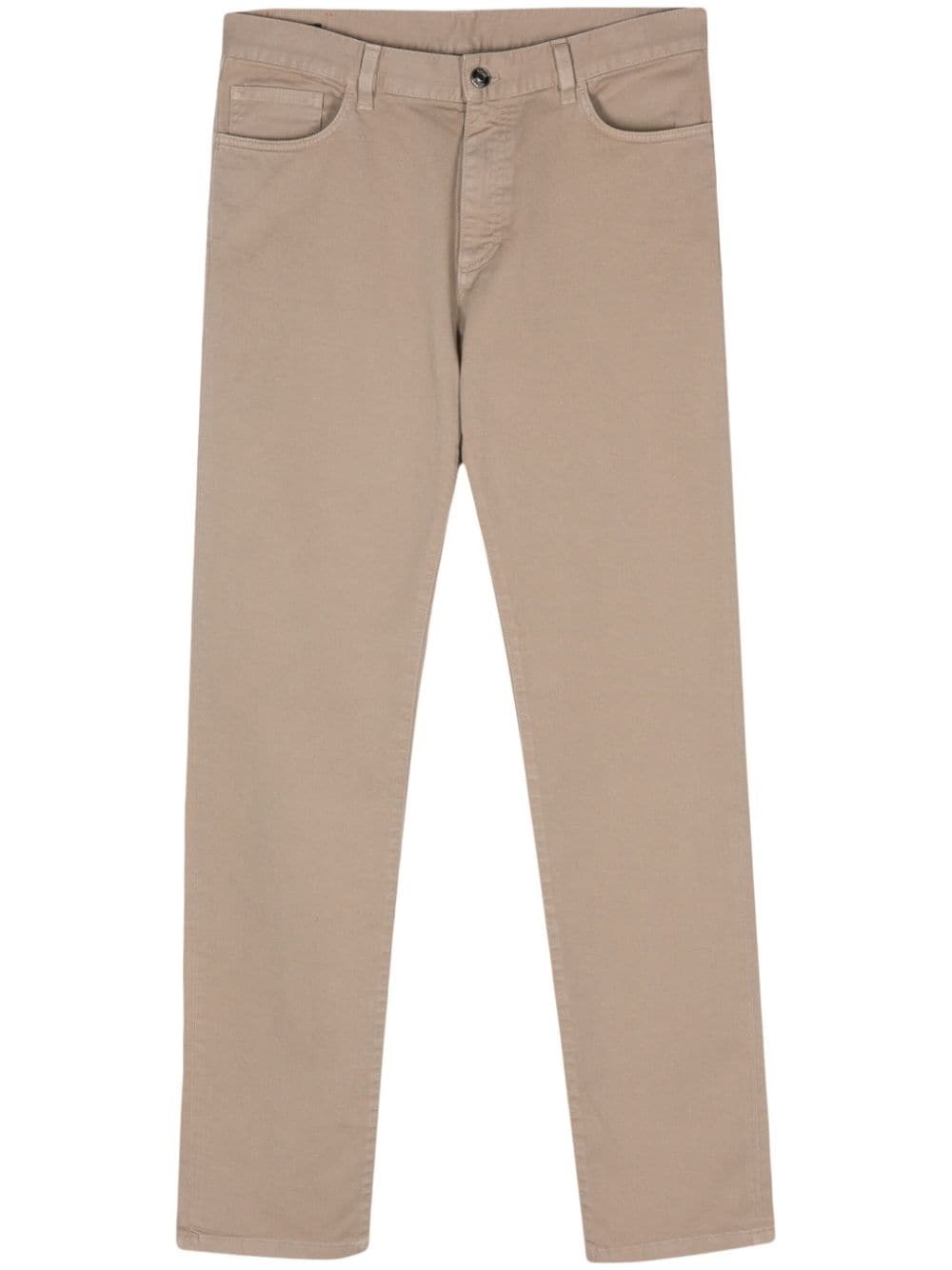 City trousers Highlights - Taupe brown - Cotton blend - Twill weave - Logo patch to the rear - Mid-rise - Belt loops - Concealed fly and button fastening - Classic five pockets - Tapered leg Imported Composition Outer: Calf Leather 100%, Cotton 98%, Spandex/Elastane 2% Lining: Cotton 100% SIZE & FIT FittingInformation Designed for a slim fit, offering a comfortable fit that sits just away from the leg Made from a midweight stretch fabric, this piece offers elasticity and flexibility when worn