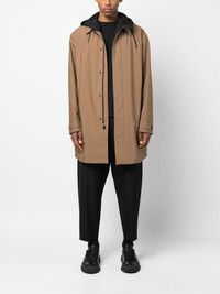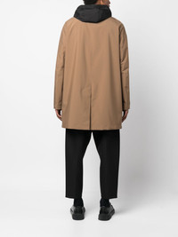 long-sleeve hooded raincoat Highlights - Camel brown/black - Cutaway collar - Front press-stud and zip fastening - Long sleeves - Drawstring hood - Two side welt pockets - Central rear vent Imported Composition Lining: Polyester 100% Outer: Polyester 100% SIZE & FIT Model measurements Height 6 ft 1 in(1.85 m) Bust/Chest 38.58 in(98 cm) Hips 37 in(94 cm) Waist 30.31 in(77 cm) Measurement CHEST 53.54 in(136 cm) SLEEVE LENGTH 37.79 in(96 cm) LENGTH 37.79 in(96 cm) WAIST 54.33 in(138 cm) FittingInformation Designed to be unstructured, offering a loose fit throughout The vented hem offers movement at the rear Made from a midweight non-stretch fabric This piece fits true to size – take your usual size