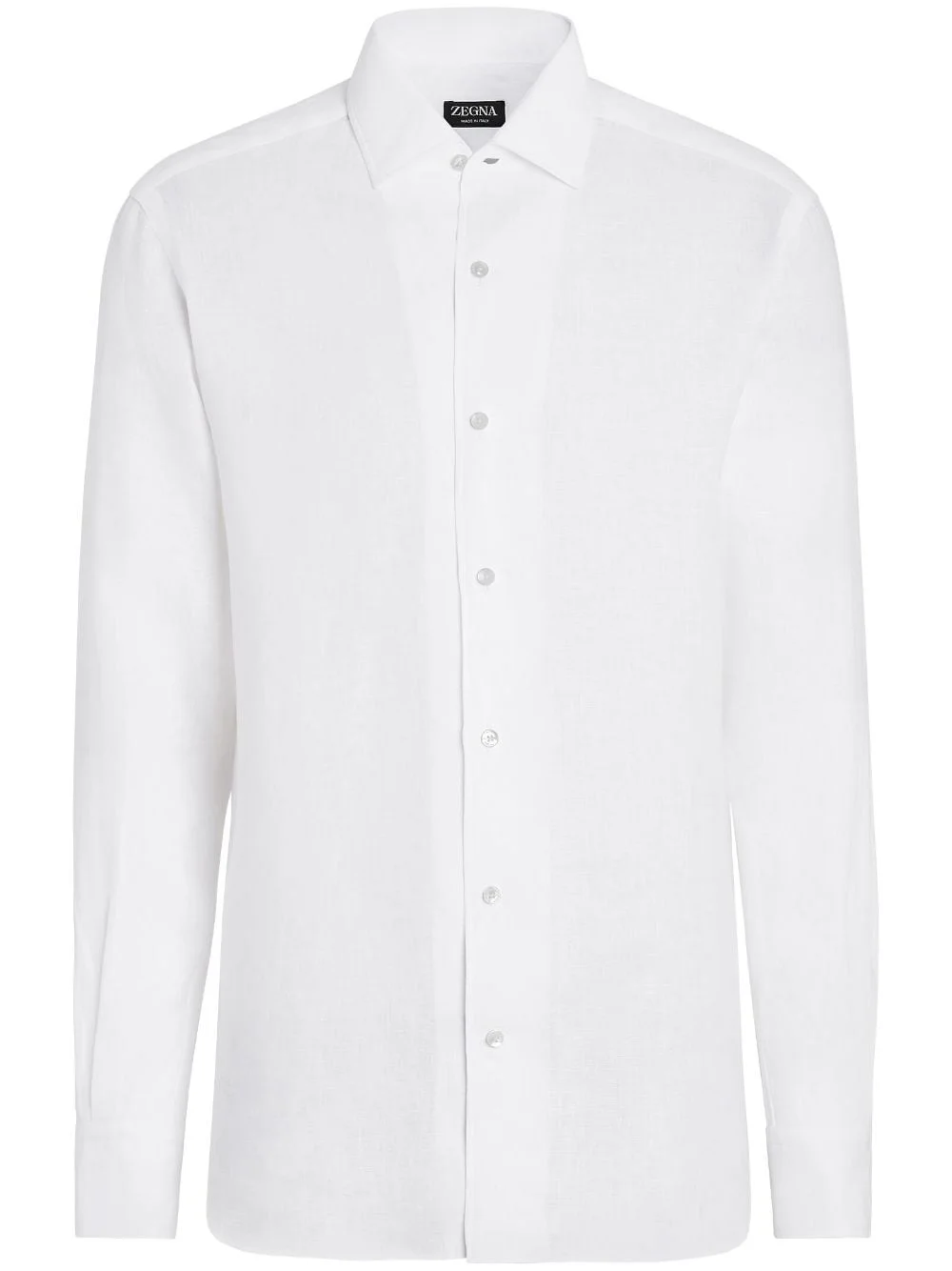 WHITE PURE LINEN LONG-SLEEVE SHIRT