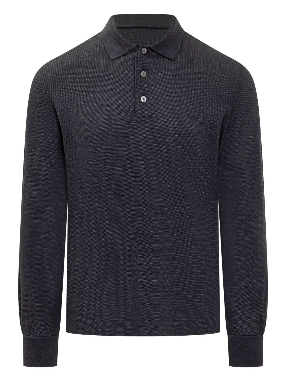 long-sleeved polo shirt Highlights - Black - Long sleeves - Button cuffs - Front button placket - Polo collar Imported Composition Cotton 75%, Silk 25% Washing instructions Read Manufacturer Guidelines