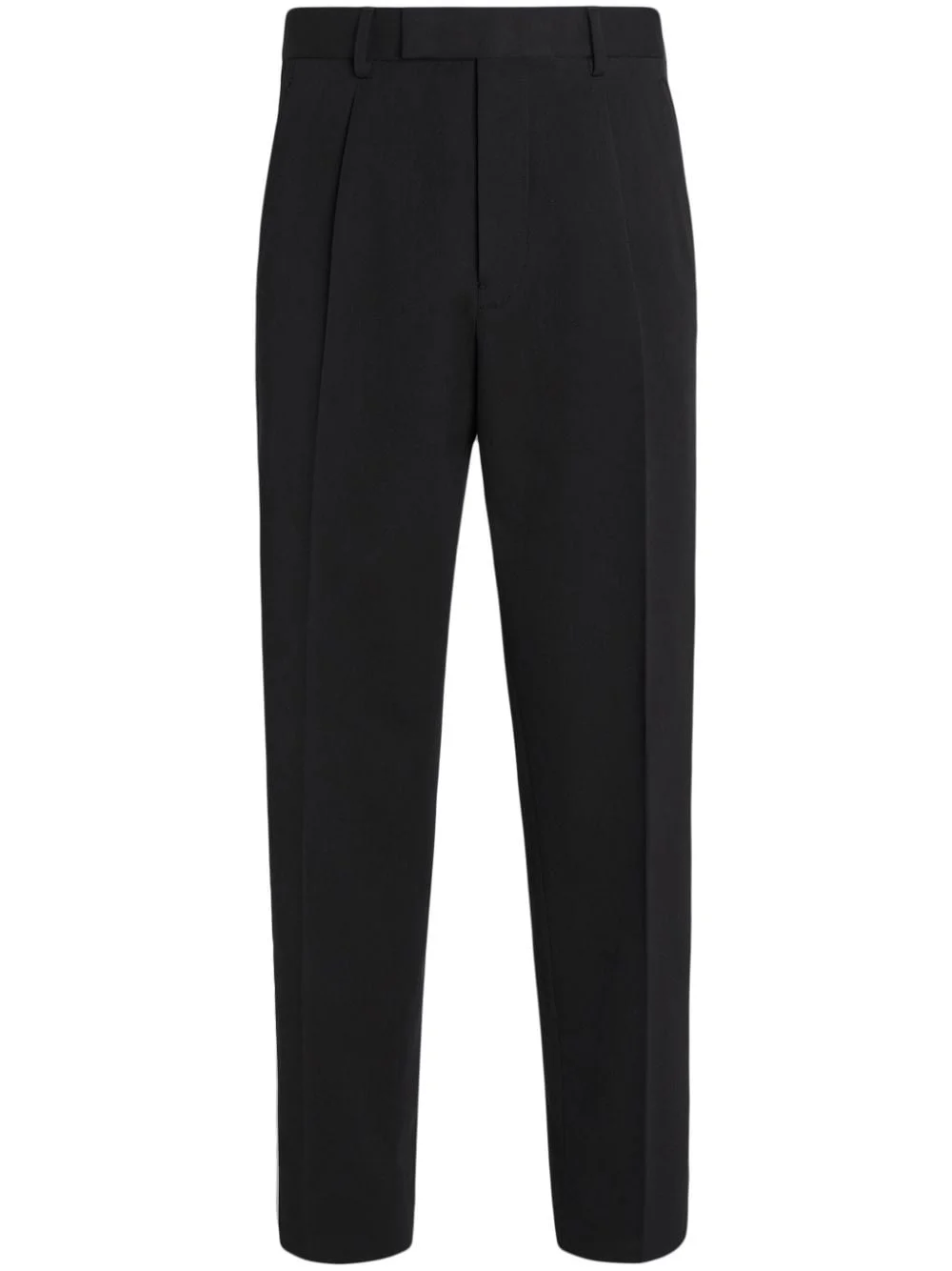 mid-rise tailored trousers Highlights - Black - Cotton-wool blend - Twill weave - Dart detailing - Pressed crease - Mid-rise - Belt loops - Concealed front fastening - Two diagonal pockets to the sides - Two rear welt pockets - Tailored cut - Tapered leg Imported Composition Cotton 57%, Wool 43% SIZE & FIT FittingInformation Designed for a tapered leg, offering a loose unrestricted fit over the leg with a closer fit towards the ankle Made from a midweight non-stretch fabric This piece fits true to size – take your usual size Washing instructions Dry Clean Only