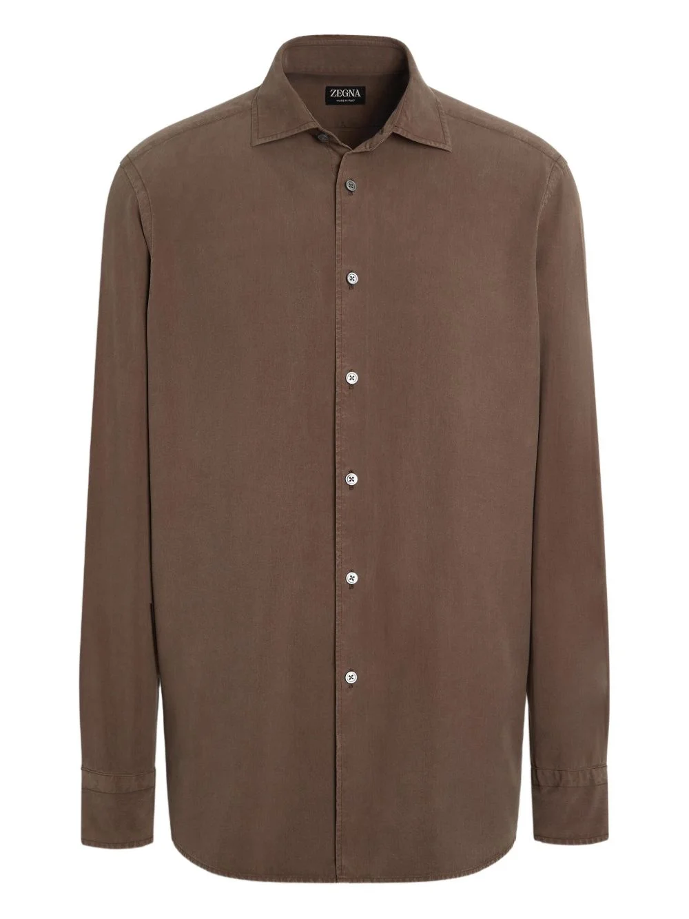mulberry silk shirt Highlights - Brown - Front button fastening - Long sleeves - Buttoned cuffs - Classic collar - Mulberry silk Made in Italy Composition Mulberry Silk 100% Washing instructions Read Manufacturer Guidelines