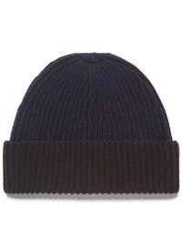 Oasi beanie Highlights - Navy blue/brown - Cashmere - Ribbed knit - Two-tone design - Round crown - Turn-up wide brim Made in Italy Composition Cashmere 100%