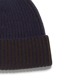 INK BLUE AND DARK BROWN OASI CASHMERE BEANIE