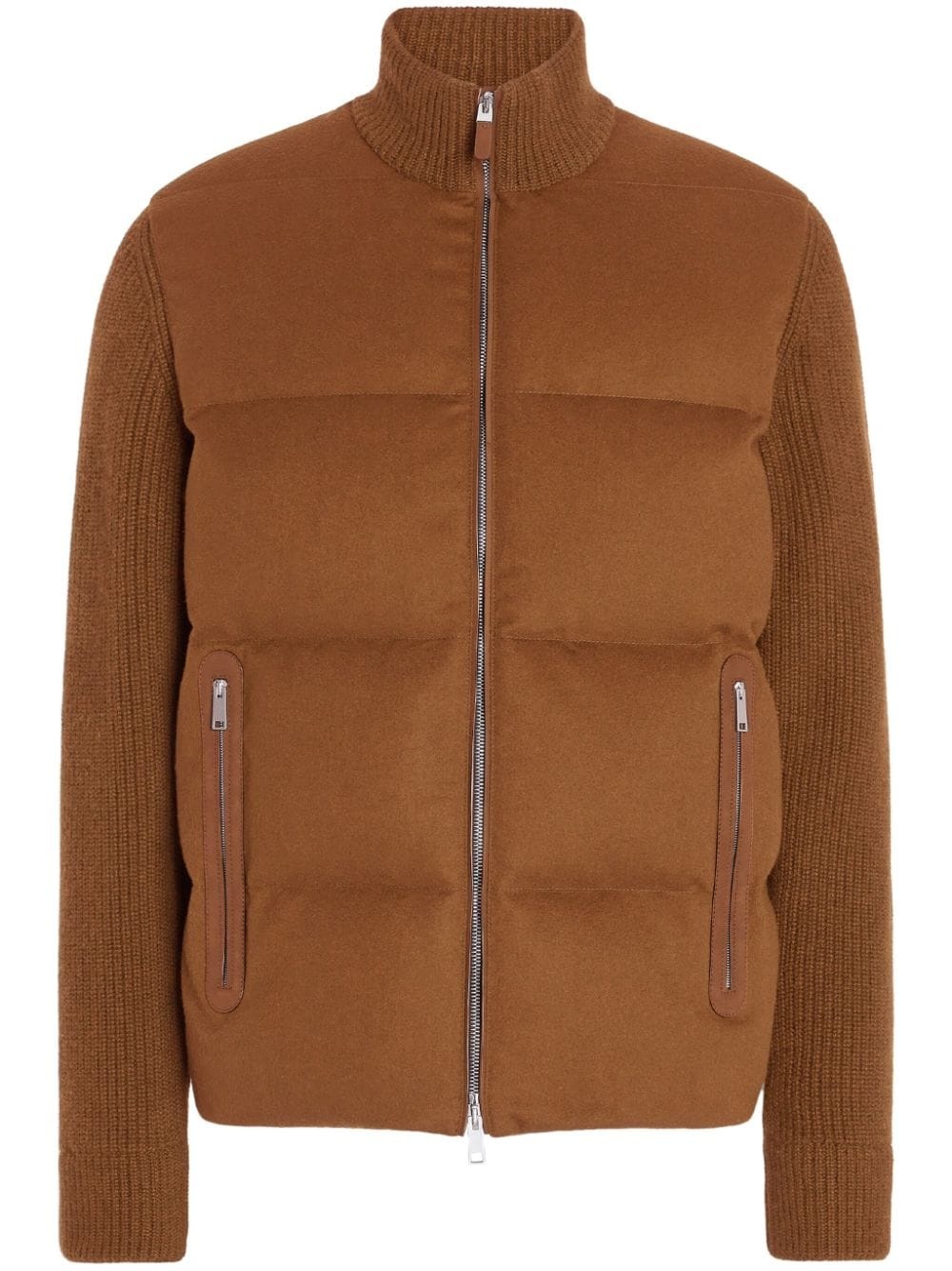 Oasi cashmere padded jacket Highlights - Foliage brown - Cashmere - Ribbed knit - Padded design - Front two-way zip fastening - Mock neck - Long sleeves - Two side zip-fastening pockets - Straight hem Imported Composition Cashmere 100% SIZE & FIT FittingInformation Designed for a relaxed fit, this piece allows for comfort and movement when worn Made from a midweight fabric