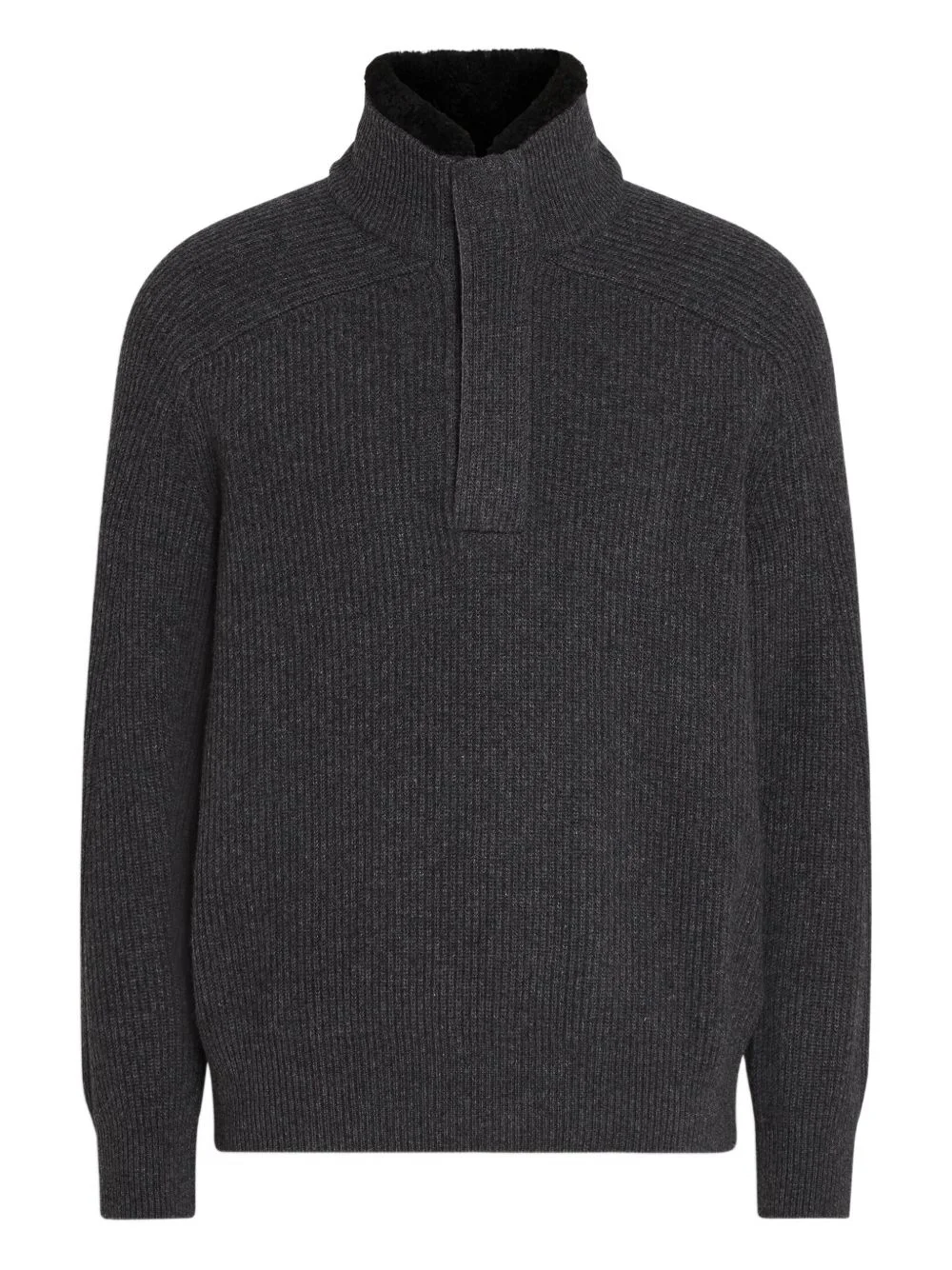 Oasi cashmere sweater Highlights - Dark grey - Melange effect - Ribbed knit - High neck - Zip closure - Shoulder detail Made in Italy Composition Cashmere 100% Washing instructions Read Manufacturer Guidelines