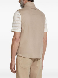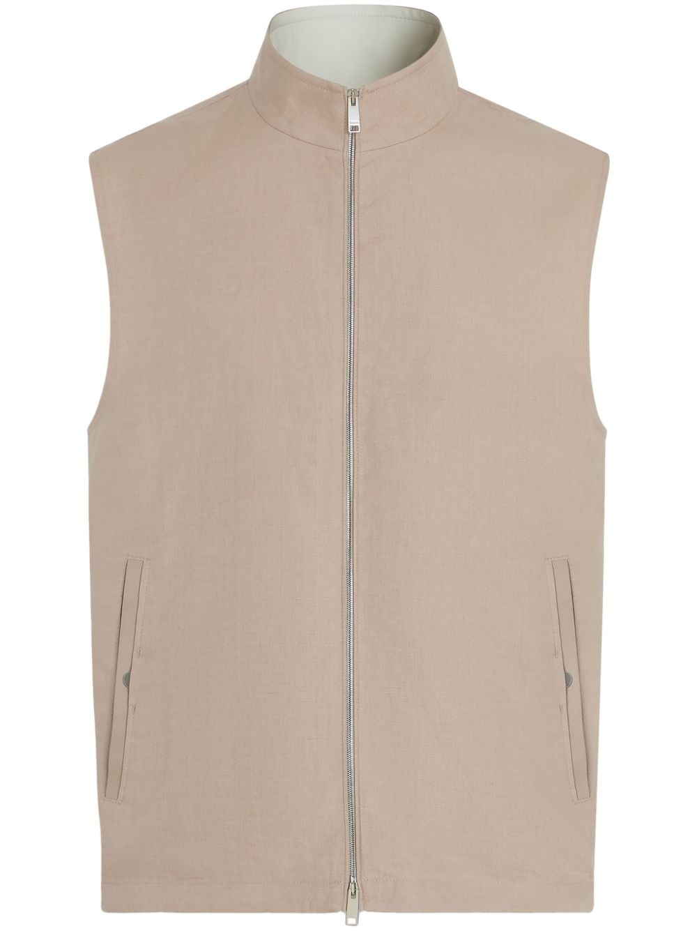 Oasi Lino gilet Highlights - Taupe - Two-way zip fastening - Two side inset pockets - Stand-up collar - Sleeveless Made In Italy Composition Linen/Flax 100% SIZE & FIT FittingInformation Designed for a regular fit, allowing for a comfortably loose fit throughout the body Measurement LENGTH 26.77 in(68 cm)
