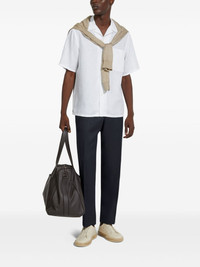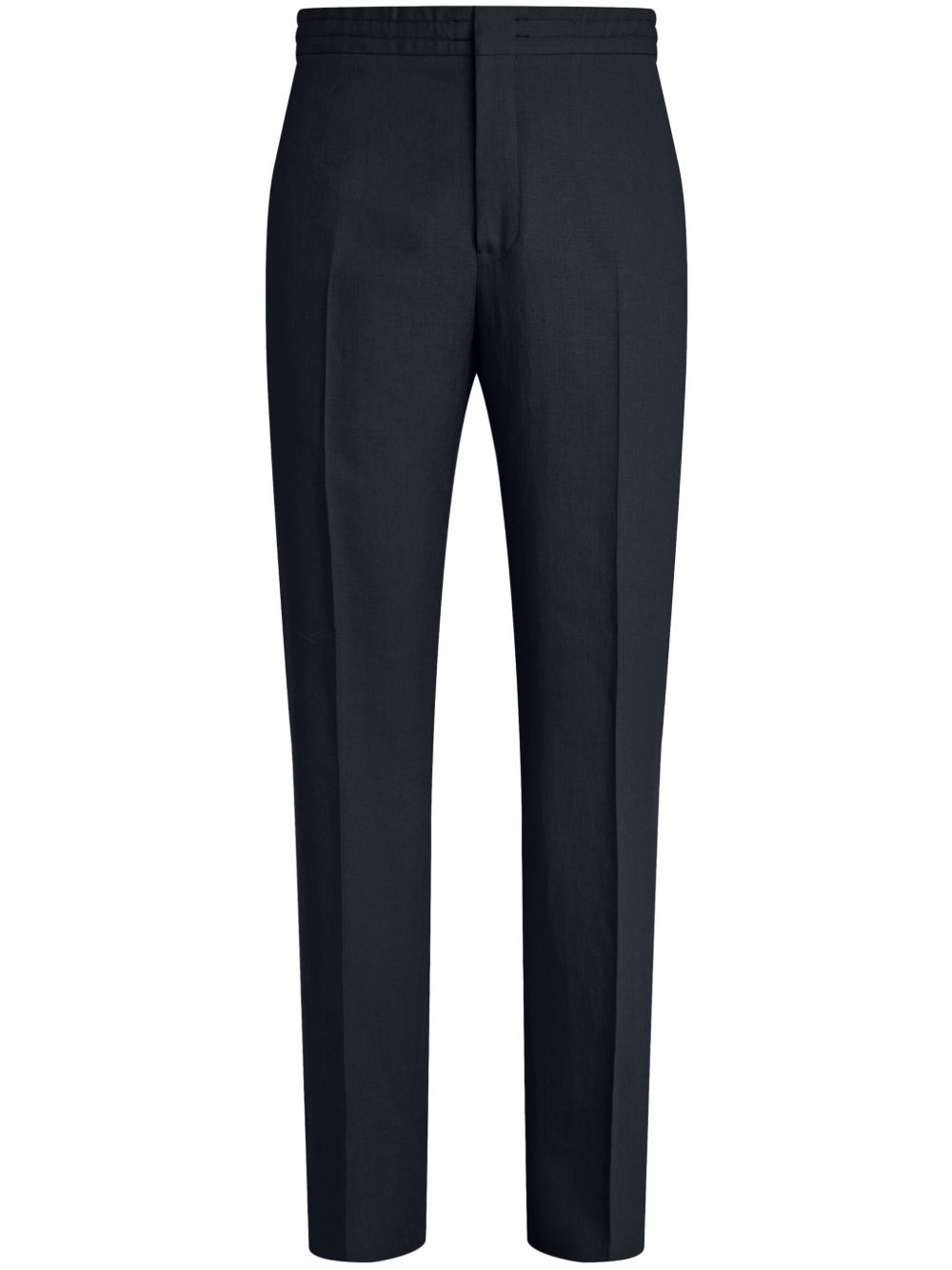 Oasi Lino trousers Highlights - Navy blue - Concealed front fastening - Elasticated waistband - Two rear jetted pockets - Belt loops Made in Italy Composition Linen/Flax 100% SIZE & FIT FittingInformation Designed for a slim fit, offering a comfortable fit that sits just away from the leg Measurement Hem Width 17.32 in(44 cm)