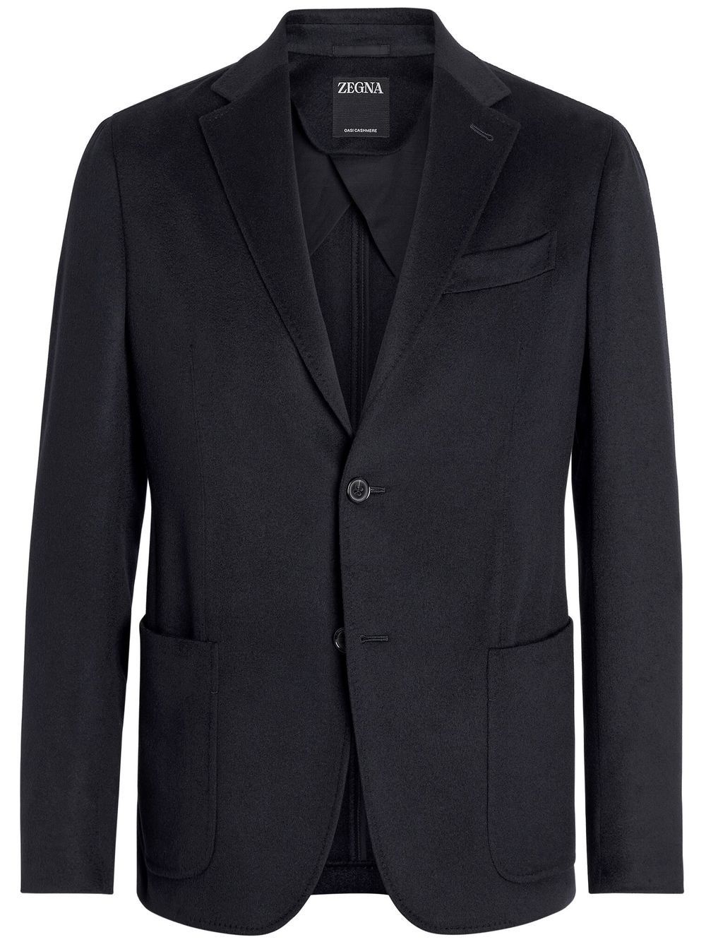 Oasi single-breasted cashmere blazer navy blue cashmere blend notched lapels chest welt pocket front button fastening multiple patch pockets long sleeves straight hem Made in Italy Composition Lining: Cotton 53%, Cupro 47% Outer: Cashmere 100% Inner: Rayon 100%