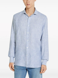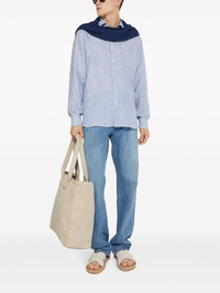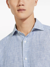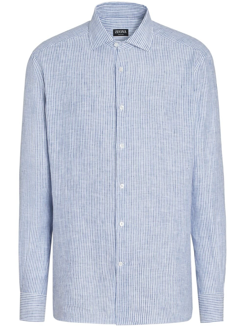 Oasi striped linen shirt Highlights - White/blue - Linen/flax - Stripe print - Classic collar - Long sleeves - Front button fastening - Buttoned cuffs - Straight hem Made in Italy Composition Linen/Flax 100% SIZE & FIT Measurement CHEST 41.73 in(106 cm) LENGTH 31.1 in(79 cm) WAIST 37.79 in(96 cm) SLEEVE LENGTH 24.8 in(63 cm) FittingInformation Designed for a regular fit, allowing for a comfortably loose fit throughout the body Made from a midweight non-stretch fabric This piece fits true to size – take your usual size