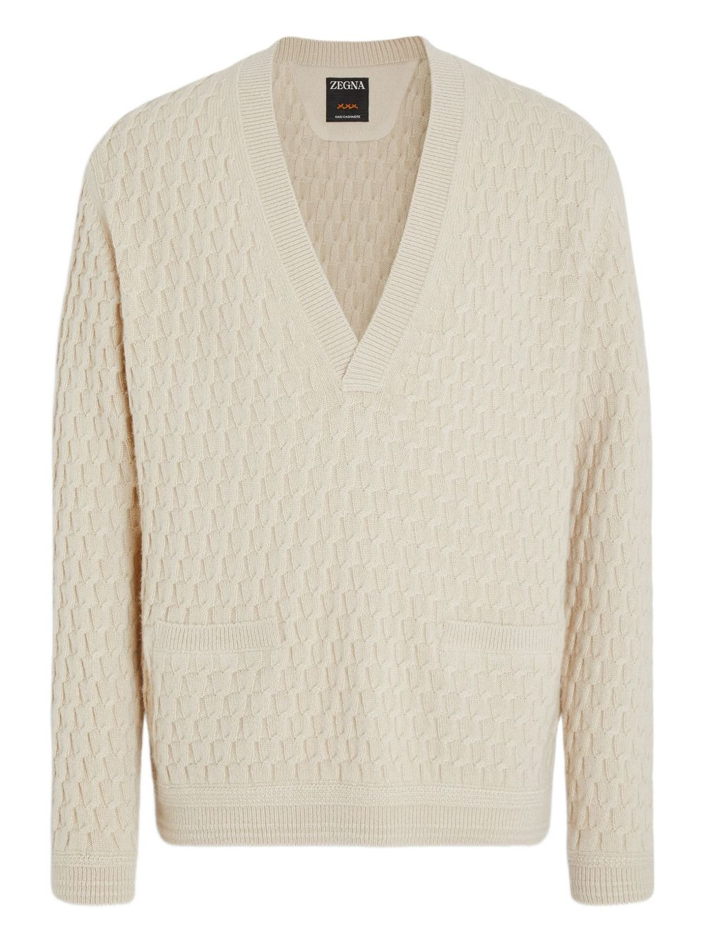 Oasi V-neck sweater Highlights - Light beige - V-neck - Patch pockets Made in Italy Composition Cashmere 100% Washing instructions Read Manufacturer Guidelines