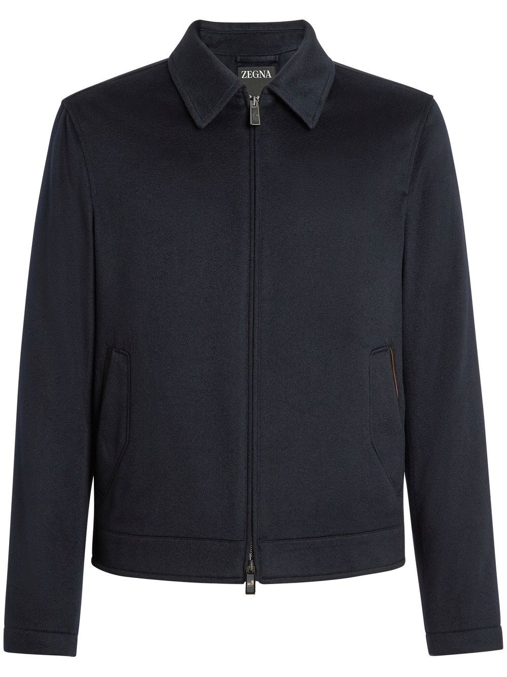 Oasi zipped-up overjacket navy blue cashmere classic collar front zip fastening long sleeves two side inset pockets Made in Italy Composition Cashmere 100%
