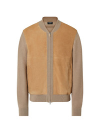 panelled-design bomber jacket Highlights - Beige - Ribbed knit - Zip fastening - Ribbed hem - Ribbed cuffs Made in Italy Composition Cashmere 100%, Calf Suede 50% Washing instructions Read Manufacturer Guidelines