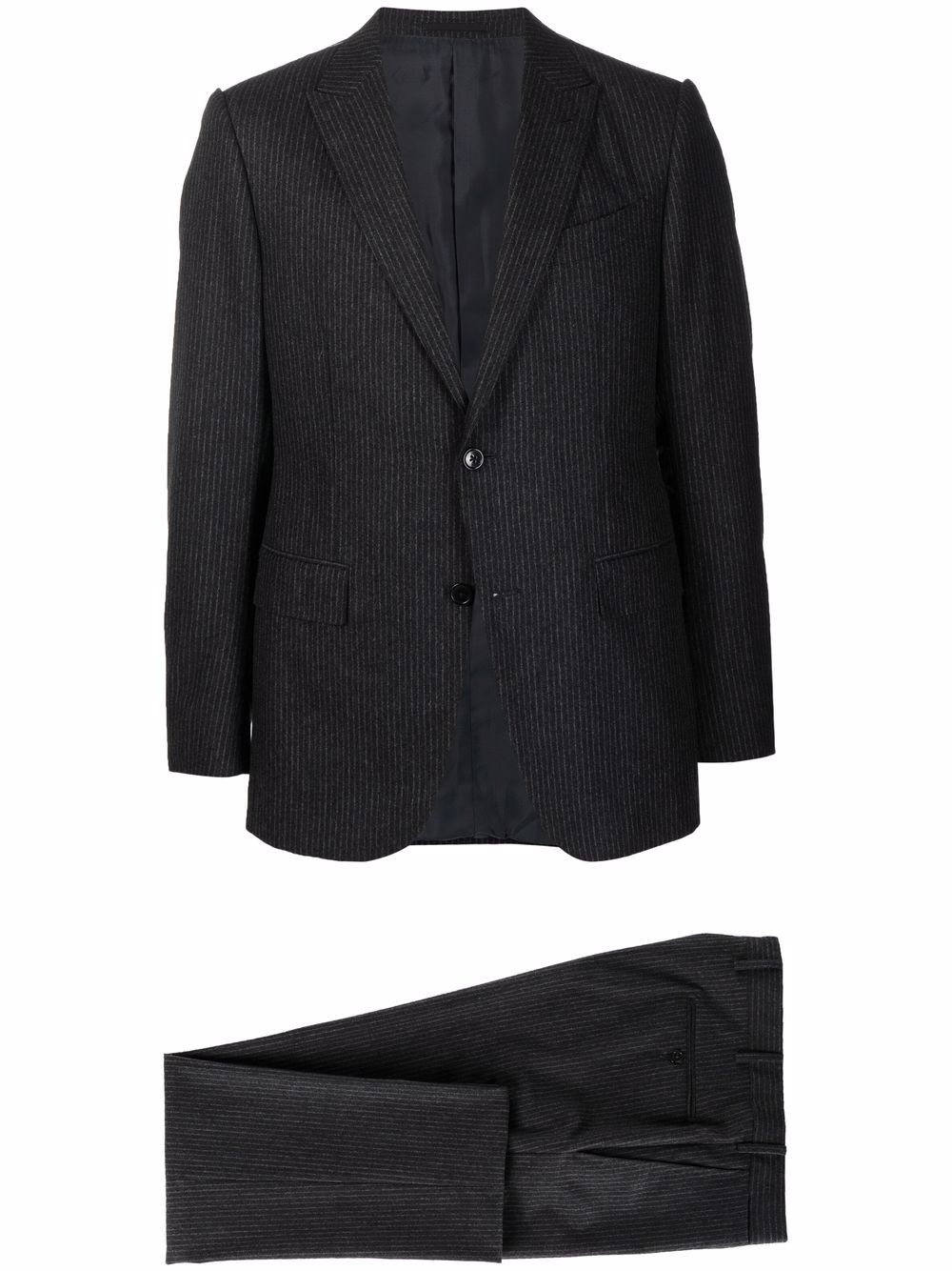pinstriped two-piece suit Highlights - Grey - Wool - Pinstripe pattern Imported Composition Lining: Viscose 100% Outer: Wool 100% SIZE & FIT Model measurements Height 6 ft 1 in(1.86 m) Bust/Chest 35.43 in(90 cm) Hips 35.43 in(90 cm) Waist 29.92 in(76 cm) FittingInformation This piece fits true to size. We recommend you get your regular size Cut for a slim fit Made with a mid-weight non-stretch fabric
