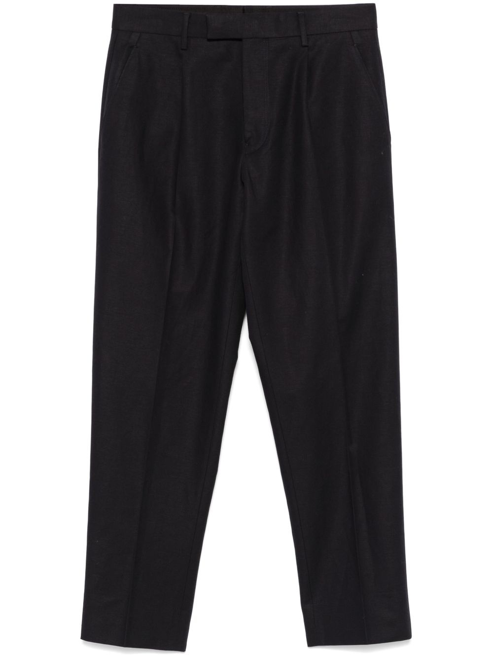 pleat-detail trousers Highlights - Midnight blue - Concealed front button, hook and zip fastening - Two diagonal pockets to the sides - Two rear welt pockets - Belt loops Imported Composition Outer: Cotton 74%, Linen/Flax 26% Lining: Cotton 100% SIZE & FIT Model measurements Height 6 ft 2 in(1.87 m) Bust/Chest 36.41 in(92.5 cm) Hips 35.43 in(90 cm) Waist 29.52 in(75 cm) FittingInformation Designed for a tapered leg, offering a loose unrestricted fit over the leg with a closer fit towards the ankle Made from a midweight non-stretch fabric
