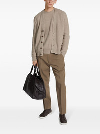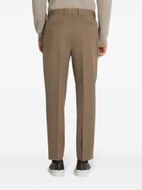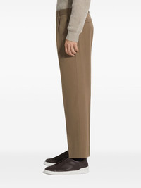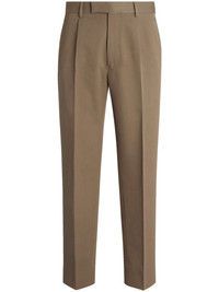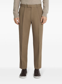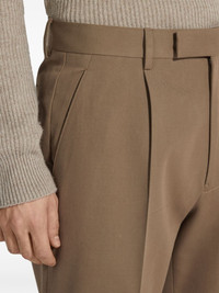 pleated trousers Highlights - Khaki brown - Cotton-wool blend - Twill weave - Mid-rise - Belt loops - Pleat detailing - Pressed crease - Concealed front button, hook and zip fastening - Tapered leg - Slip pockets to the sides - Two rear welt pockets Made in Italy Composition Cotton 57%, Wool 43% SIZE & FIT FittingInformation Designed for a tapered leg, offering a loose unrestricted fit over the leg with a closer fit towards the ankle Made from a midweight non-stretch fabric