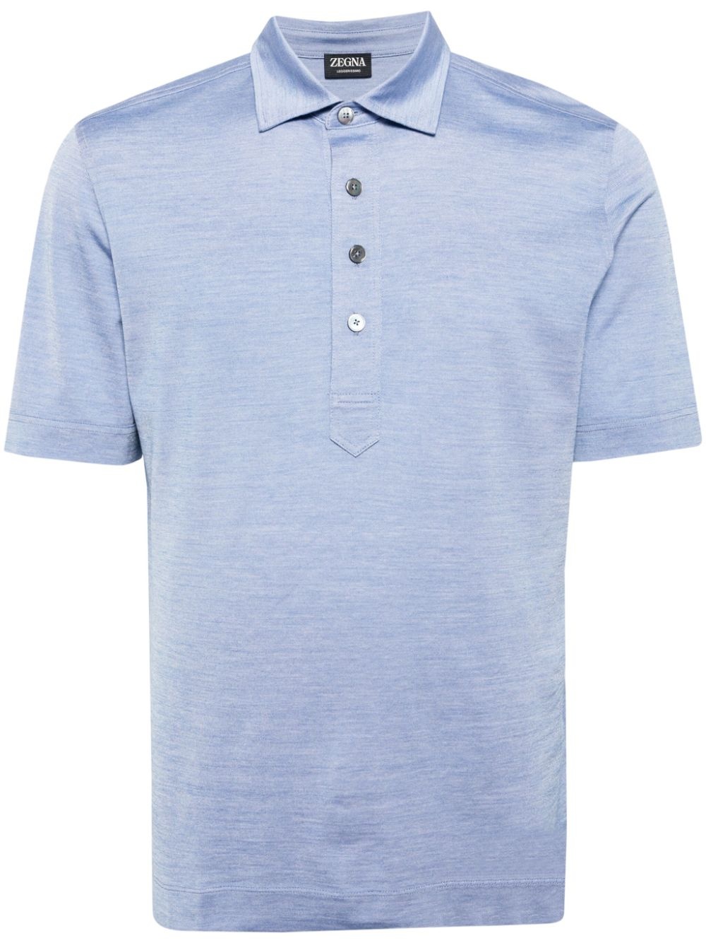 polo-collar cotton-blend polo shirt Highlights - Baby blue - Cotton-silk blend - Pique weave - Polo collar - Short front button fastening - Short sleeves - Straight hem Imported Composition Silk 50%, Cotton 50% SIZE & FIT Model measurements Height 6 ft 2 in(1.87 m) Bust/Chest 34.25 in(87 cm) Hips 36.22 in(92 cm) Waist 29.52 in(75 cm) FittingInformation Designed for a regular fit, this polo shirt offers a comfortable loose fit throughout the body Made from a midweight non-stretch fabric, this piece offers minimal elasticity when worn This piece fits true to size – take your usual size