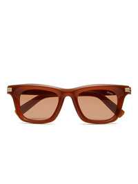 rectangular-frame sunglasses brown rectangular frames gold-tone detailing tinted lenses bold silhouette wide temples These glasses come with a protective case. Made in Italy Composition Acetate 100% SIZE & FIT Measurement Arm Length 5.7 in(14.5 cm) Bridge Width 0.82 in(2.1 cm) Lens Diameter 1.92 in(4.9 cm)