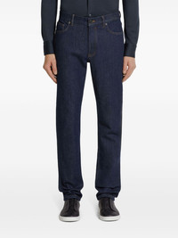 Roccia rinse-washed jeans Highlights - Dark blue - Stretch-cotton - Denim - Logo patch to the rear - Mid-rise - Front button and zip fastening - Classic five pockets - Straight leg Imported Composition Cotton 99%, Elastane 1% SIZE & FIT FittingInformation Designed for a slim fit, these jeans offer a comfortable fit that sits just away from the leg