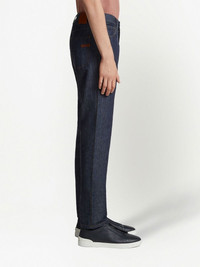 DARK BLUE RINSE-WASHED COTTON AND LINEN ROCCIA JEANS