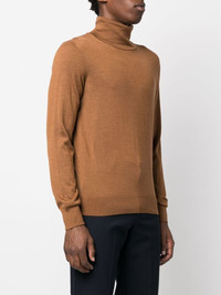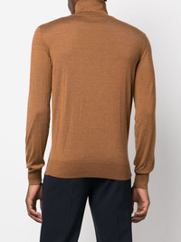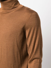 roll neck jumper chestnut brown cashmere-silk blend roll neck long sleeves ribbed hem Made in Italy Composition Cashmere 70%, Silk 30% SIZE & FIT Model measurements Height 6 ft 1 in(1.86 m) Bust/Chest 38.18 in(97 cm) Hips 38.18 in(97 cm) Waist 30.7 in(78 cm) FittingInformation Designed for a slim fit, offering a comfortable fit that sits just away from the body Made with a lightweight knit, this piece offers some stretch This piece fits true to size – take your usual size Washing instructions Dry Clean Only