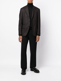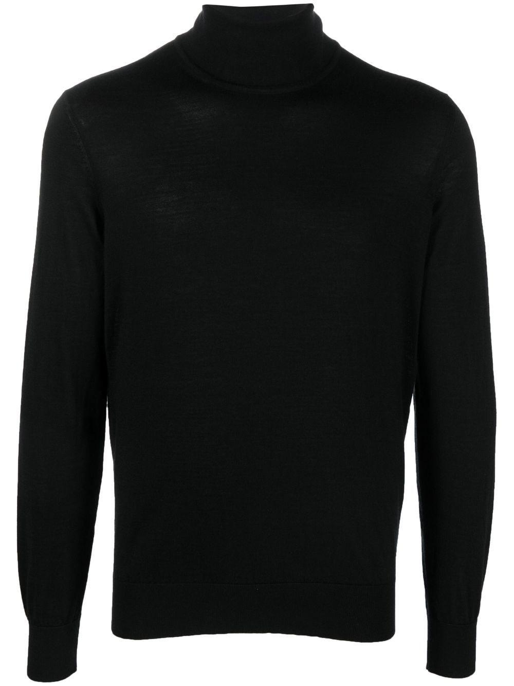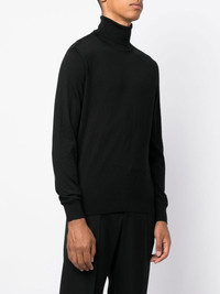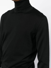 roll-neck knit jumper jet black cashmere-silk blend fine knit roll neck long sleeves straight hem Made in Italy Composition Cashmere 70%, Silk 30% SIZE & FIT Model measurements Height 6 ft 2 in(1.89 m) Bust/Chest 35.82 in(91 cm) Hips 37.99 in(96.5 cm) Waist 32.28 in(82 cm) Measurement CHEST 43.3 in(110 cm) SLEEVE LENGTH 35.03 in(89 cm) Shoulder Width 17.71 in(45 cm) FittingInformation Designed for a slim fit, offering a comfortable fit that sits just away from the body Made with a lightweight knit, this piece offers some stretch This piece fits true to size – take your usual size Washing instructions Dry Clean Only