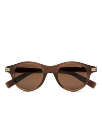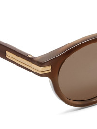 round-frame sunglasses Highlights - Brown - Round frames - Gold-tone detailing - Hinge embellishment - Shaded lenses - Side arm accents - These glasses come with a protective case. Made in Italy Composition Acetate 100% SIZE & FIT Measurement Arm Length 5.7 in(14.5 cm) Bridge Width 0.82 in(2.1 cm) Lens Diameter 1.88 in(4.8 cm)