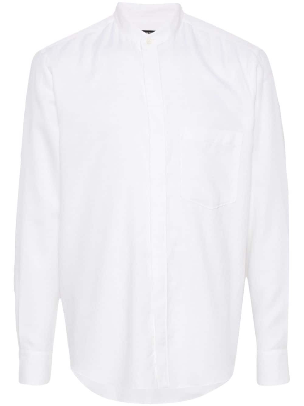 round-neck shirt Highlights - Cream white - Cotton-cashmere blend - Textured finish - Round neck - Long sleeves - Buttoned cuffs - Chest patch pocket - Curved hem - Front button fastening Made in Italy Composition Cotton 85%, Cashmere 15% SIZE & FIT Model measurements Height 6 ft 2 in(1.87 m) Bust/Chest 36.22 in(92 cm) Hips 35.43 in(90 cm) Waist 29.13 in(74 cm) FittingInformation Designed for a regular fit, allowing for a comfortably loose fit throughout the body Made from a midweight non-stretch fabric This piece fits true to size – take your usual size