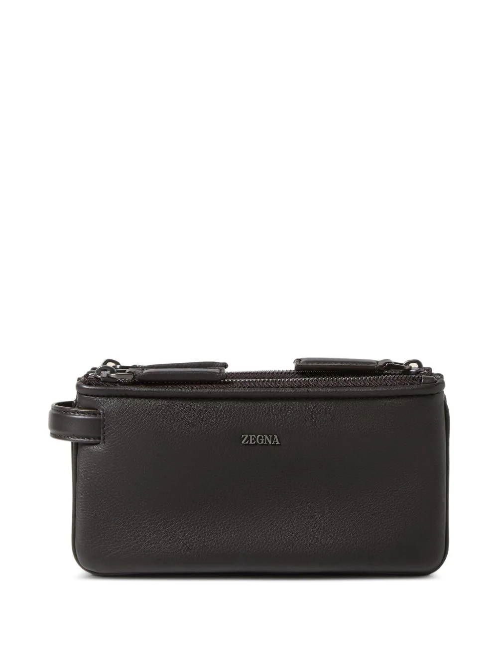 SECONDSKIN zip wash bag Highlights - Dark brown - Top handle - Zip-fastening Made in Italy Composition Outer: Calf Leather 100%