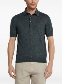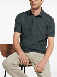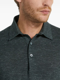 DARK GREEN MÉLANGE SILK CASHMERE AND LINEN POLO SHIRT