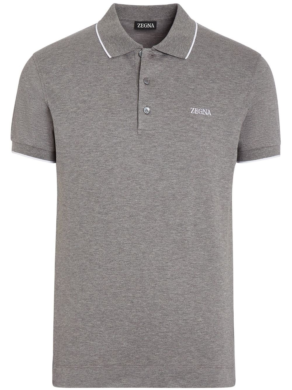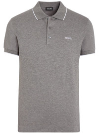short-sleeve polo shirt Highlights - Medium grey - Stretch-cotton - Embroidered logo at the chest - Striped edge - Polo collar - Front button placket - Short sleeves - Straight hem Imported Composition Cotton 95%, Spandex/Elastane 5% SIZE & FIT Measurement CHEST 42.51 in(108 cm)