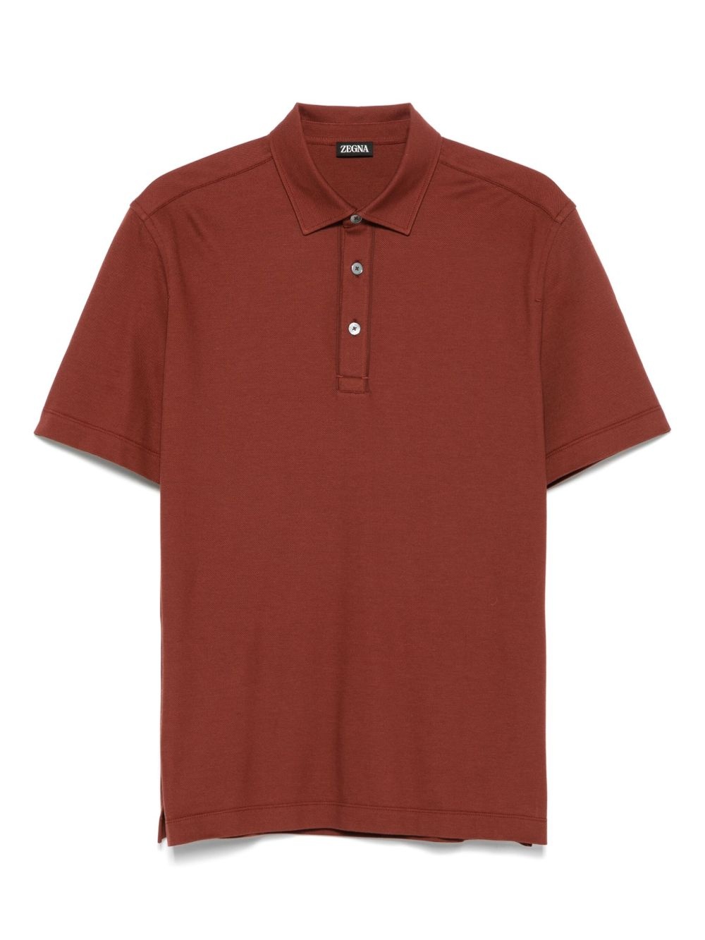 short-sleeves polo shirt Highlights - Rust brown - Front button placket - Short side slits - Locker loop Imported Composition Cotton 100%, Calf Leather 100% SIZE & FIT Model measurements Height 6 ft 2 in(1.87 m) Bust/Chest 36.41 in(92.5 cm) Hips 37 in(94 cm) Waist 29.52 in(75 cm) FittingInformation Designed for a relaxed fit, this polo shirt offers comfort and movement Made from a midweight non-stretch fabric, this piece offers minimal elasticity when worn