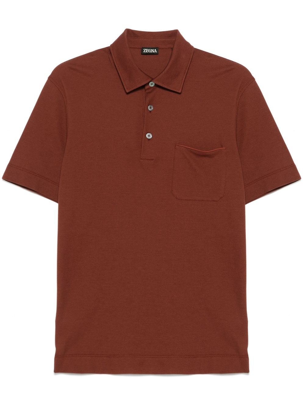 short-sleeves polo shirt Highlights - Rust brown - Front button placket - Chest patch pocket - Short side slits Imported Composition Cotton 100%, Calf Leather 100% SIZE & FIT Model measurements Height 6 ft 2 in(1.87 m) Bust/Chest 38.97 in(99 cm) Hips 37.99 in(96.5 cm) Waist 29.52 in(75 cm) FittingInformation Designed for a regular fit, this polo shirt offers a comfortable loose fit throughout the body Made from a lightweight non-stretch fabric, this piece offers minimal elasticity when worn