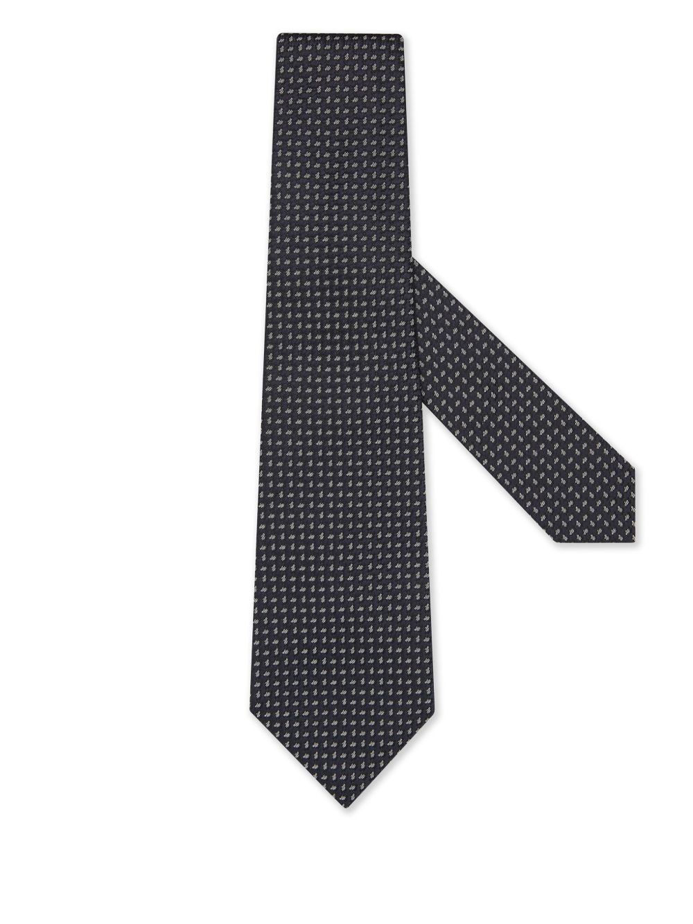 silk tie Highlights - Navy blue - Patterned jacquard - Pointed tip Made in Italy Composition Silk 100% SIZE & FIT Measurement WIDTH 3.14 in(8 cm)
