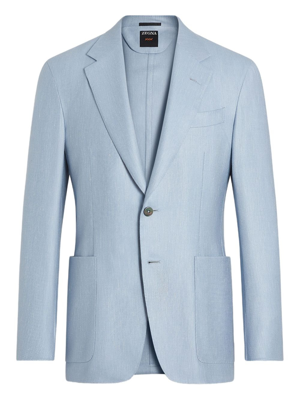 single-breasted blazer Highlights - Light blue - Patch pockets - Button fastening - Notched lapels Made in Italy Composition Cashmere 64%, Silk 23%, Linen/Flax 13% Washing instructions Read Manufacturer Guidelines