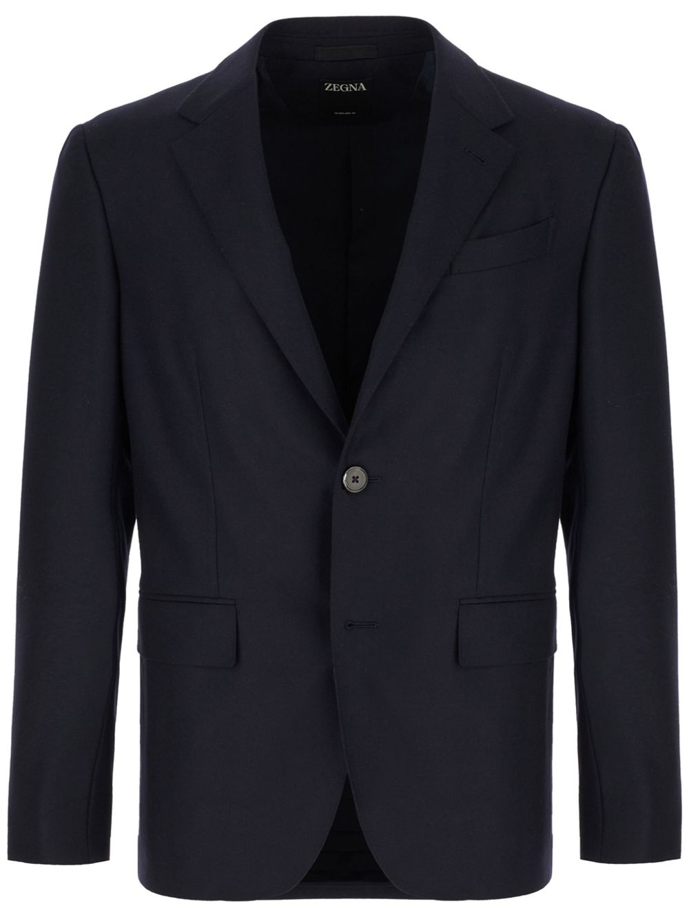 single-breasted blazer Highlights - Navy blue - Front button fastening - Jetted chest pocket - Front flap pockets - Buttoned cuffs Made in Italy Composition Wool 89%, Mulberry Silk 6%, Cashmere 5%