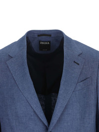single-breasted linen blazer Highlights - Blue - Linen - Two-button closure - Notched lapel - Front flap pockets - Buttoned cuffs Made in Italy Composition Linen/Flax 100% Washing instructions Read Manufacturer Guidelines