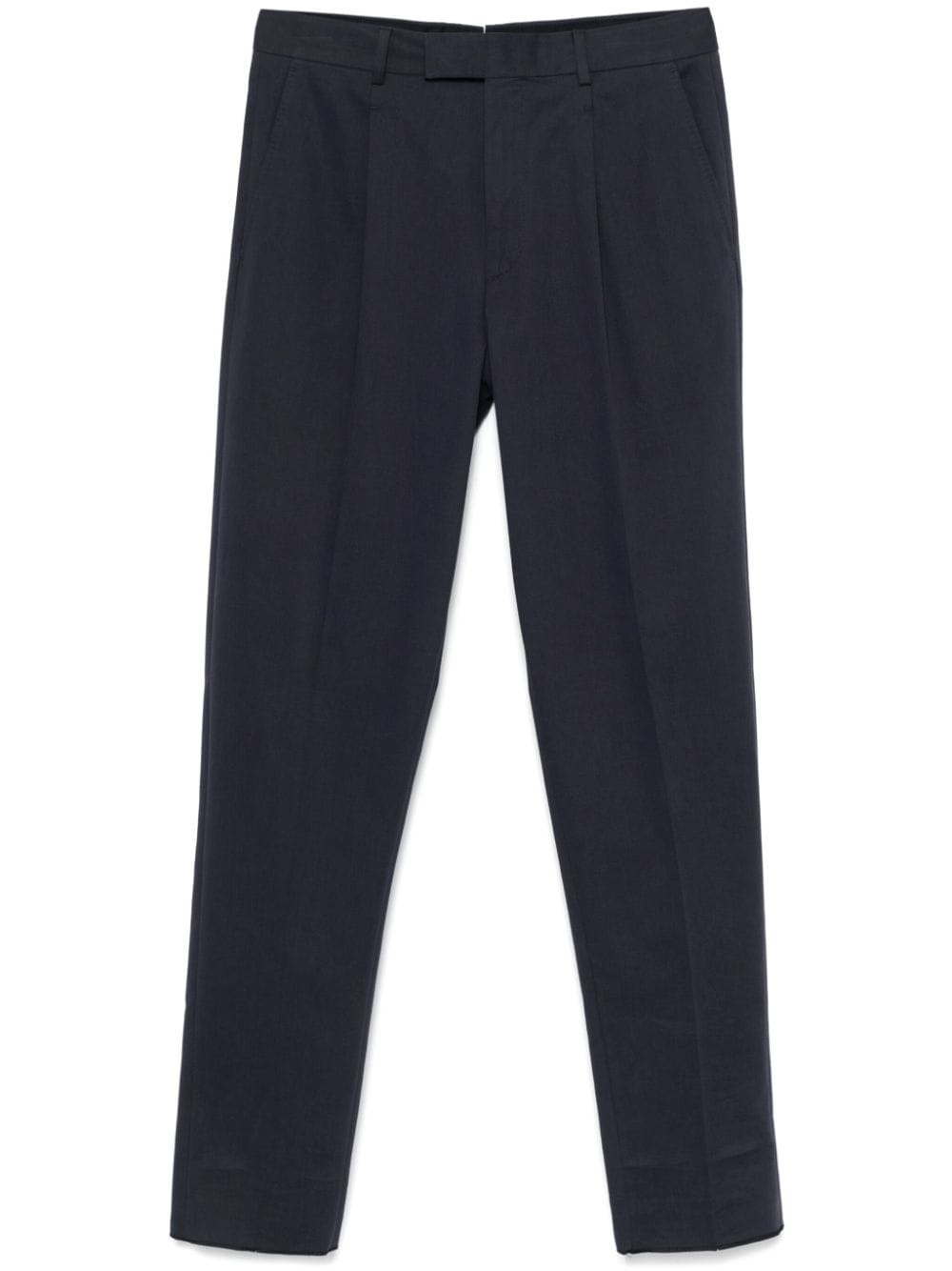 slim chino trousers Highlights - Navy blue - Cotton-cashmere blend - Concealed front button, hook and zip fastening - Belt loops - Dart detailing - Two diagonal pockets to the sides - Two rear button-fastening jetted pockets - Slim cut Imported Composition Outer: Cotton 95%, Cashmere 4%, Elastane 1% Lining: Cotton 100% SIZE & FIT Model measurements Height 6 ft 2 in(1.88 m) Bust/Chest 35.43 in(90 cm) Hips 36.61 in(93 cm) Waist 27.95 in(71 cm) FittingInformation Designed for a slim tapered leg, offering a close fit that sits just away from the leg with a closer fit towards the ankle The unfinished hems allow for the length to be altered Made from a midweight stretch fabric, this piece offers elasticity and flexibility when worn