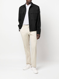straight-leg chino trousers Highlights - Light beige - Stretch-cotton - Twill weave - Belt loops at the waist - Two side slash pockets - Coin pocket - Pressed crease - Two rear button-fastening jetted pockets - Internal locker loop - Internal logo tag - Tapered leg - Concealed front button, hook and zip fastening Imported Composition Outer: Cotton 97%, Spandex/Elastane 3% Lining: Cotton 100% SIZE & FIT Model measurements Height 6 ft 0 in(1.84 m) Bust/Chest 35.82 in(91 cm) Hips 37 in(94 cm) Waist 28.34 in(72 cm) FittingInformation This piece fits true to size. We recommend you get your regular size Cut for a slim fit Made with a mid-weight stretch fabric Measurement INSIDE LEG 36.22 in(92 cm) FRONT RISE 9.84 in(25 cm) HIPS 40.15 in(102 cm) Washing instructions Dry Clean Only