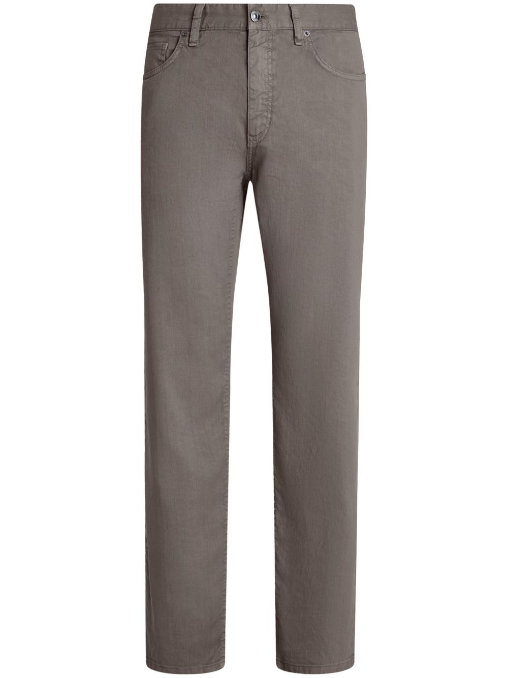 DARK TAUPE STRETCH COTTON AND LINEN ROCCIA JEANS